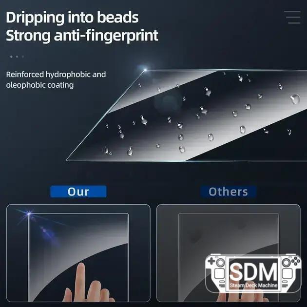 Os protetores AmFilm são de vidro temperado com dureza 9H, oferecendo resistência a riscos, água e óleo. A linha OneTouch é desenhada para manter a sensibilidade do touchscreen, mantendo a tela do Steam Deck com alta transparência e toque fiel. A espessura ultrafina de 0,3 mm ajuda a preservar a sensação original de uso.